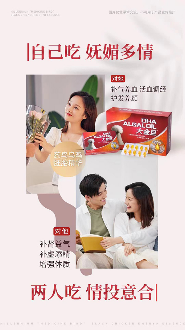 大金旦無糖型烏雞蛋黃油DHA藻油亞麻籽油夾心軟糖,以千年“藥鳥”烏雞胚胎精華、馬泰克藻油DHA、亞麻油OMEGA-3為主要成分。其所含的營養(yǎng)成分,對女性具有補(bǔ)氣養(yǎng)血、活血調(diào)經(jīng)、護(hù)發(fā)養(yǎng)顏之益處;對男性具有補(bǔ)腎益氣、補(bǔ)虛添精、增強(qiáng)體質(zhì)之益處。均衡補(bǔ)充,呵護(hù)健康,無糖型夾心軟糖設(shè)計(jì),口感更佳。