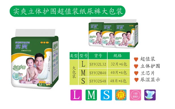 品牌名稱:實(shí)爽 主營產(chǎn)品:實(shí)爽嬰幼兒紙尿褲招商 品牌特色:衛(wèi)生舒適 超薄鎖水