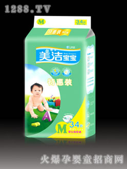 美潔寶寶舒適柔面尿褲采用體質(zhì)無紡布精致而成,經(jīng)專家特別設(shè)計(jì),當(dāng)嬰兒便溺時(shí)水份經(jīng)隔尿紙巾迅速滲入尿布內(nèi),能保持嬰兒皮膚干爽舒適。
