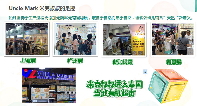 Uncle Mark米克叔叔品牌是鋐美(泰國)工業(yè)股份有限公司旗下產(chǎn)品,公司成立于1988年,是泰國政府批準(zhǔn)為BOI(投資促進(jìn)委員會(huì))全外資食品工廠,獲得多項(xiàng)國際認(rèn)證和擁有先進(jìn)技術(shù)與設(shè)備,專業(yè)生產(chǎn)嬰幼兒輔食、即食粥、即溶谷粉以及健康休閑食品。