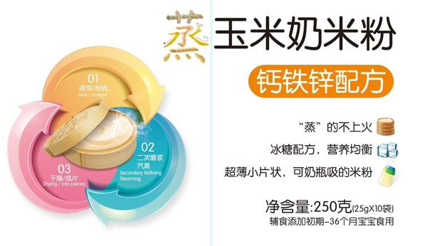 蒸汽滾筒干燥法:通過蒸汽滾筒工藝,鎖住米香和營養(yǎng),減少了寶寶上火現(xiàn)象;