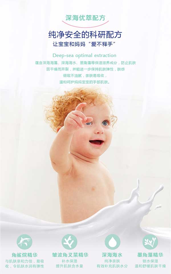 Bresican貝施康滋養(yǎng)護(hù)手霜是 “深海優(yōu)萃”系列的護(hù)手產(chǎn)品,根據(jù)yinge特殊肌膚PH特點(diǎn)研制,從深海中萃取自然純凈成分,配方做到純正安全,讓媽媽心安!