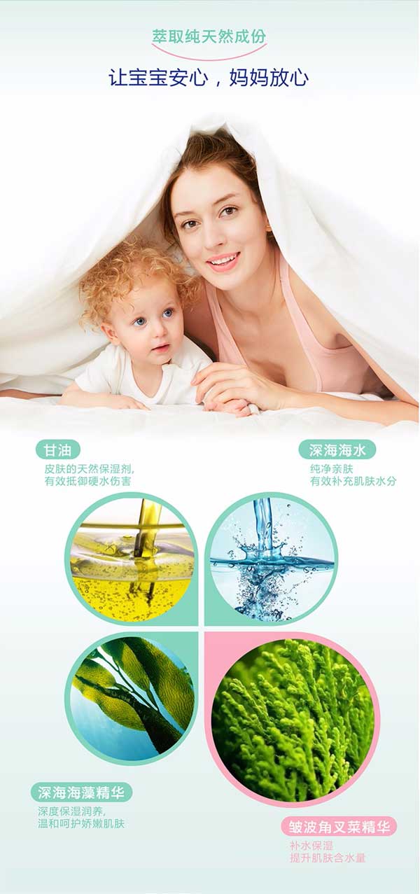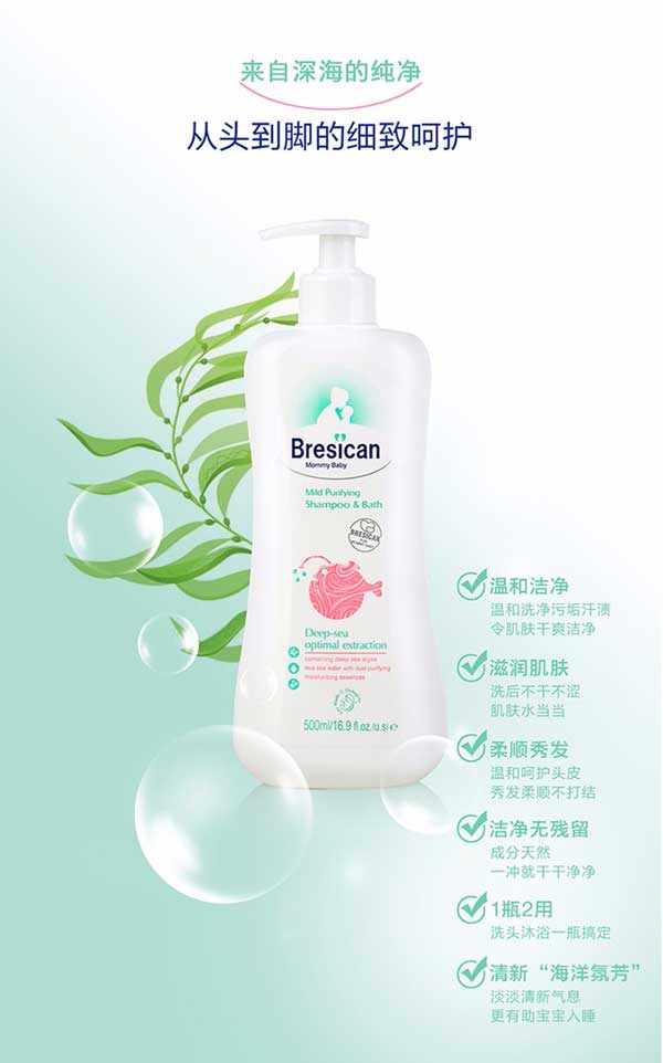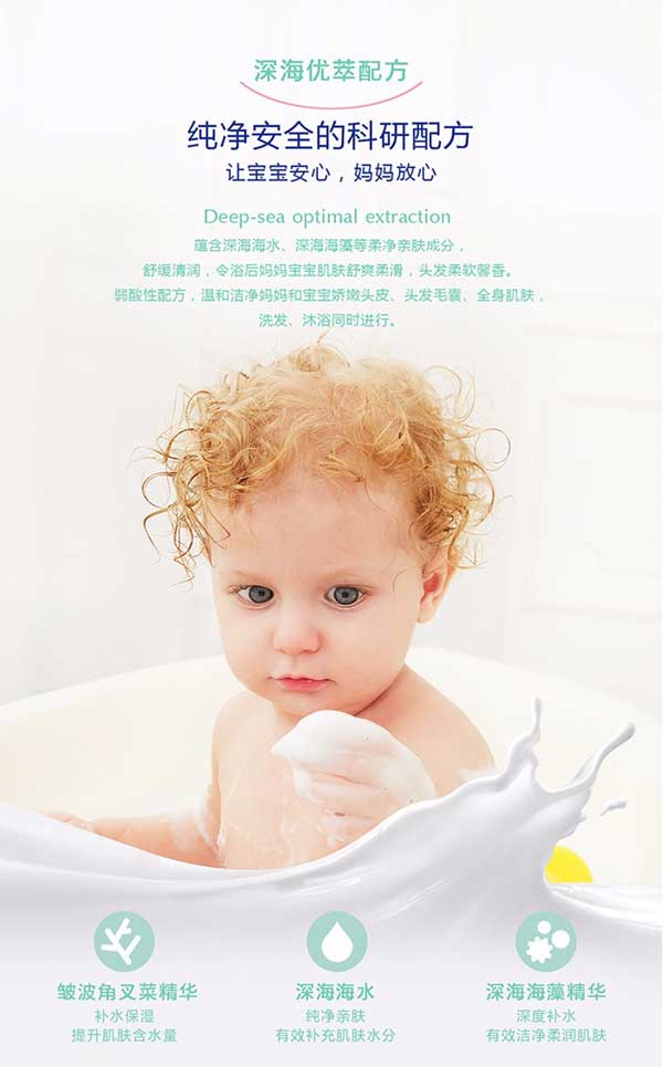 貝施康柔凈洗發(fā)沐浴2合1是 “深海優(yōu)萃”系列的王牌產(chǎn)品,根據(jù)yinge特殊肌膚PH特點(diǎn)研制,從深海中萃取自然純凈成分,配方做到純正安全,讓媽媽心安!