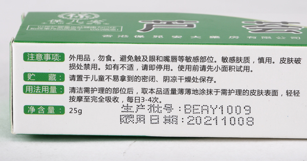 用法用量:清潔需護理的部位后,取本品適量薄薄地涂抹于需護理的皮膚表面,輕輕按摩至安全吸收,每日3-4天。