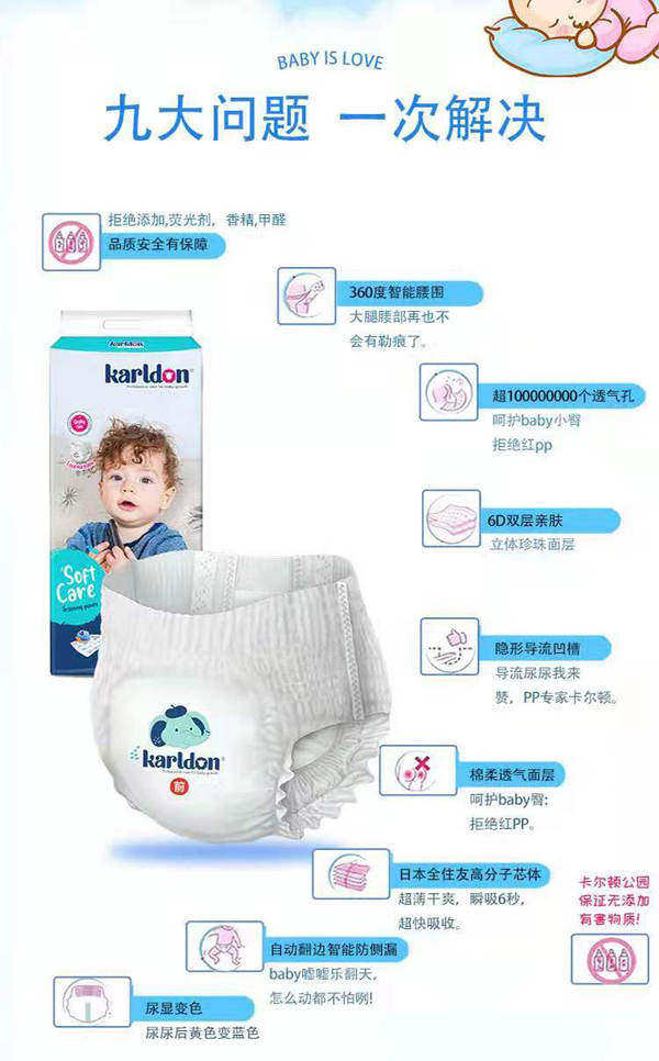 卡爾頓公園拉拉褲,專為長時間使用而設(shè)計,能持久保持寶寶小屁屁干爽,透氣加倍,遠離紅屁屁!快速6秒瞬吸鎖水,超薄柔軟,百分百全住友吸水因子,當然更“靠譜”!6D復(fù)合技術(shù),隱藏式導(dǎo)流凹槽工藝,上億個微孔透氣,干雙加倍,舒適加倍!同時更采用人體工程學(xué)設(shè)計,貼合小屁屁,減少腿部摩擦,穿脫建議,寶寶喜歡,媽媽省心!