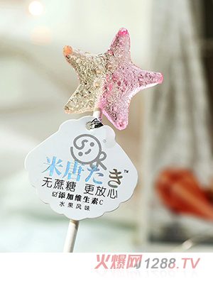• 米唐たき海洋小分隊棒棒糖-海星漸變白桃味藍莓味蘋果味香蕉味多種口味兒童小零食8g/支