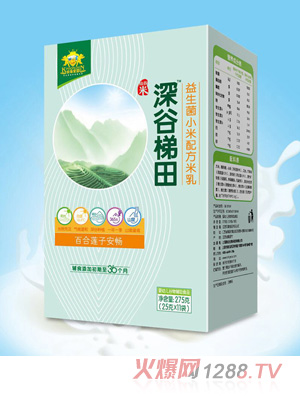 1.金盾愛嬰深谷梯田益生菌小米配方米乳,具有百合蓮子、果蔬繽紛、核桃紅棗、淮山薏米四個(gè)配方,分為罐裝和盒裝兩種,口味齊全,營養(yǎng)豐富,