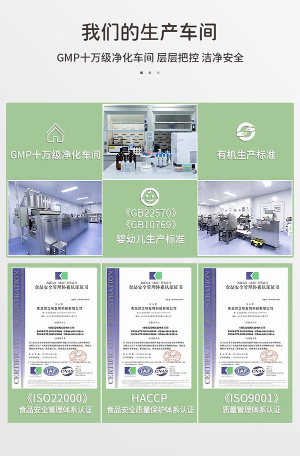 青島然之味生物科技有限公司是yingye面條、yingye輔食營養(yǎng)素撒劑、yingye豬肝粉等產(chǎn)品專業(yè)生產(chǎn)加工的公司,擁有完整、科學(xué)的質(zhì)量管理體系。青島然之味生物科技有限公司的誠信、實力和產(chǎn)品質(zhì)量獲得業(yè)界的認(rèn)可。歡迎各界朋友蒞臨參觀、指導(dǎo)和業(yè)務(wù)洽談。