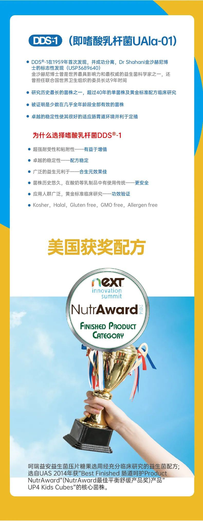 呵瑞益安益生菌壓片糖果,選用進口菌株,菌株原料符合美國FDA GRAS要求,每片添加活菌數50億CFU,添加嗜酸乳桿菌UAla-01、乳雙歧桿菌UABla-01,高活菌量,香甜口感。四大自主工藝:低溫干燥風冷壓片技術,劑嵌式干燥斜插包裝技術,自主造粒技術,自主充氮包裝工藝;原料安全,認證齊全,方便食用,無需冷藏。
