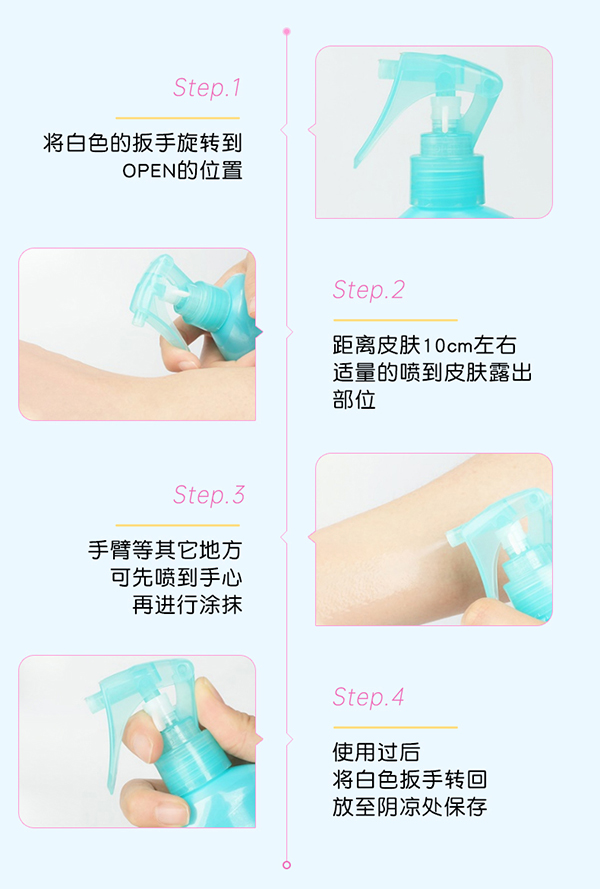 安全無(wú)毒,安心使用,經(jīng)過(guò)多次抗過(guò)敏測(cè)試,低刺激,可直接噴涂在皮膚上。