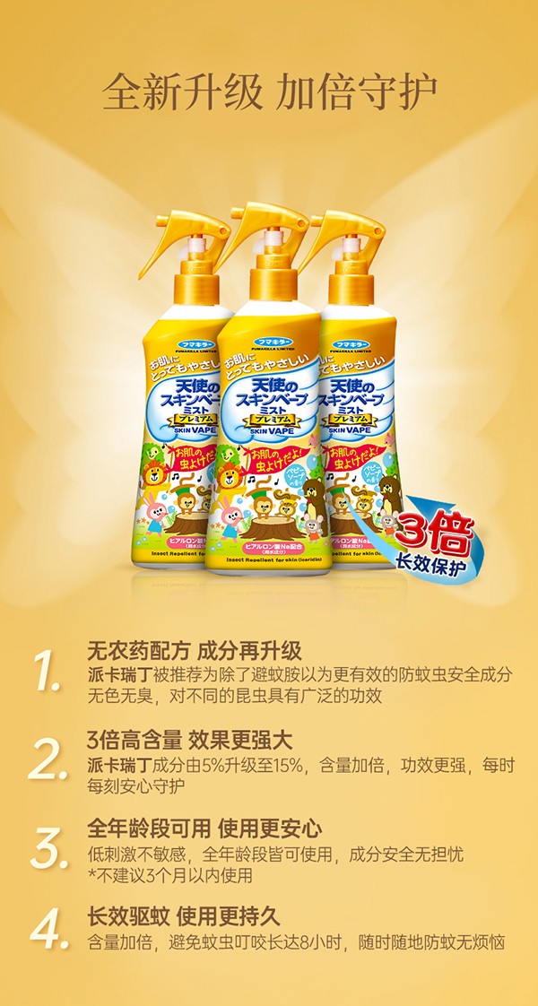 保濕成分,含有質(zhì)酸保濕成分,防叮咬的同時(shí)給肌膚做保濕護(hù)理,配合止汗劑,維持長(zhǎng)時(shí)間防叮咬的效果。