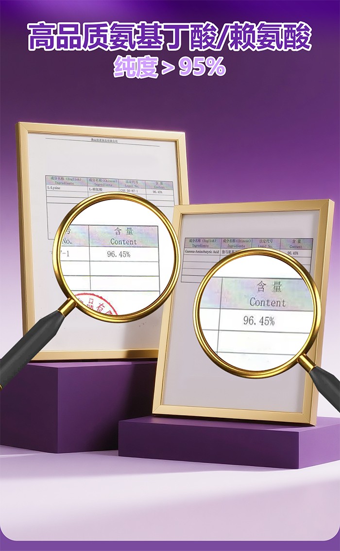 2、每袋添加95%純度以上頂高純度氨基丁酸105mg,促進(jìn)生長(zhǎng)激素的釋放。