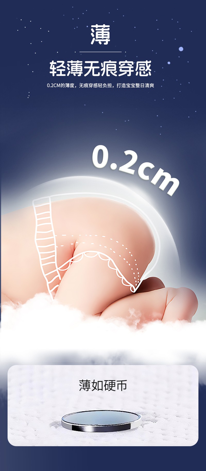 輕薄無(wú)痕穿感:0.2cm的薄度,無(wú)痕穿感,輕薄無(wú)負(fù)擔(dān),打造寶寶整日清爽。