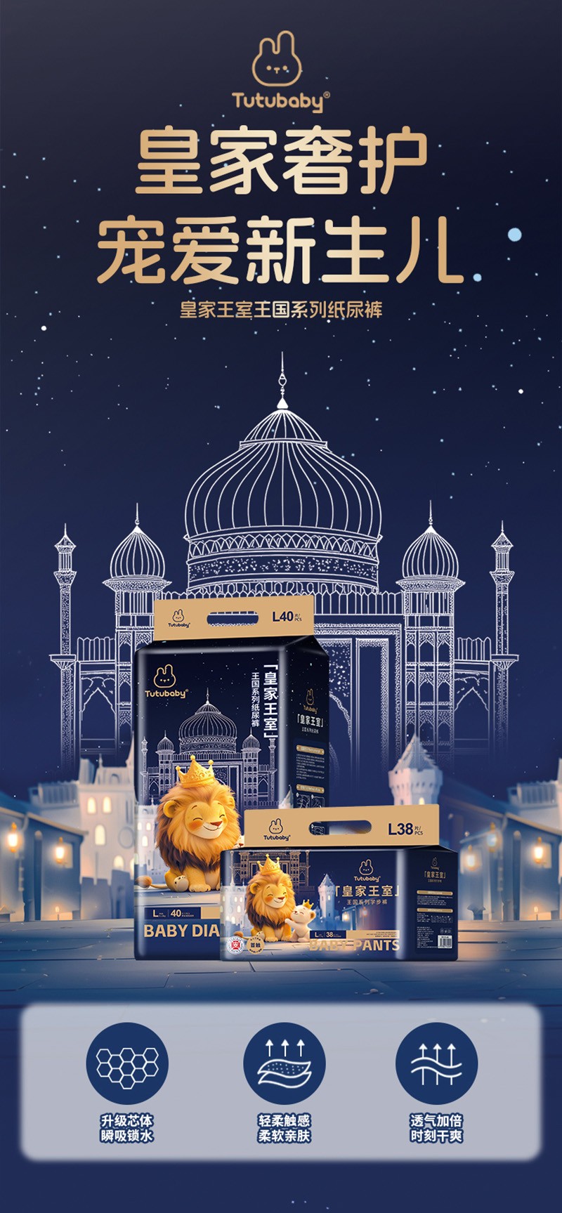 兔小貝皇家王室王國(guó)系列紙尿褲 柔護(hù)無(wú)界相伴成長(zhǎng)