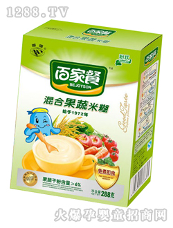 百家餐營養(yǎng)專家根據(jù)當(dāng)代的生理特征及飲食習(xí)慣,研制出專供中國bao--bao的百家餐雙歧因子米粉。百家餐雙歧因子米粉產(chǎn)品精選各種有機(jī)食品為主要原料,富含多種維生素及礦物質(zhì),營養(yǎng)、健康、安全有保障。