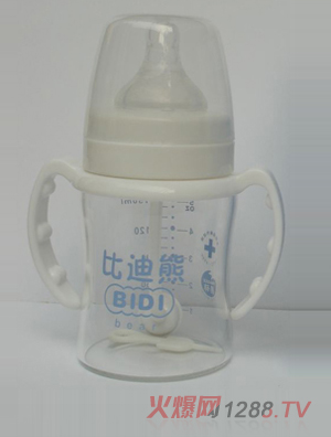 奶瓶是小bao--bao必備的生活用品,奶瓶雖小,但選擇一款合適的奶瓶,并不是那么容易的,比迪熊奶瓶”為進口pp材料制成,不添加任何增白熒光粉,不含雙酚a.先進生產技術,無接縫,不卡奶垢,易清洗;瓶身耐摔防漏。