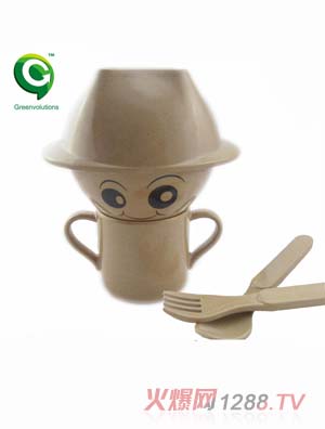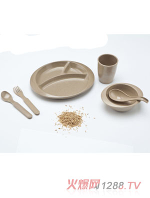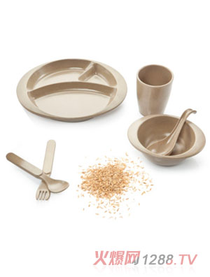 綠之態(tài)系列兒童餐具是大連綠之態(tài)科技有限公司研發(fā)、生產(chǎn)的系列產(chǎn)品。此系列餐具屬于餐具史的“革命”,因?yàn)榇讼盗胁途卟皇遣捎盟芰、金屬、陶瓷、橡膠等傳統(tǒng)材料制成,而是天然、絕對(duì)綠色的可再生資源“稻殼”制成。