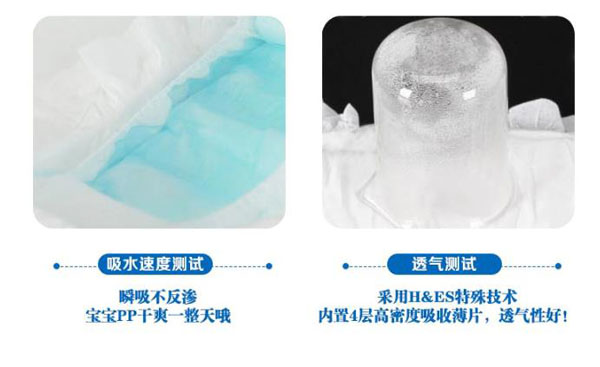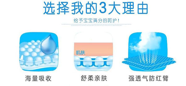 高分子吸收芯體,選用特殊復(fù)合芯體,吸收更快、更強(qiáng)韌、不易斷層。3D立體雙層防護(hù),加強(qiáng)防漏能力能更好阻隔尿液外溢。雙層舒爽芯,進(jìn)口住友+三大雅高分子完美配比,瞬間吸收、牢固鎖水。親膚透氣底膜,良好的透氣性的PE膜,形成有效的縱向?qū)α骺焖賹?dǎo)出廢氣和濕氣,沒(méi)有紅屁屁,讓寶寶的皮膚盡情的呼吸。360°雙層立體防側(cè)漏,寶寶怎么動(dòng)都不怕。