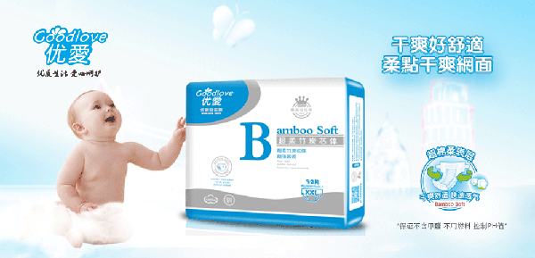 “優(yōu)愛”品牌,產(chǎn)品涵蓋超柔竹炭芯體紙尿褲、超柔竹炭芯體拉拉褲、嬰兒醫(yī)用護(hù)理墊系列等,親膚舒適,超強(qiáng)防漏。