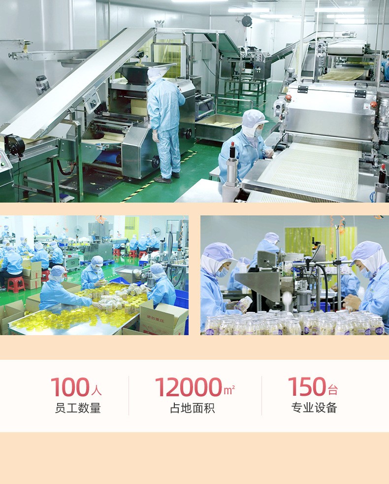 漳州童世界食品有限公司主營一站式代加工OEM業(yè)務(wù),致力于健康兒童食品、功能性代餐食品、凍干燕窩的研發(fā)與生產(chǎn),公司占地面積12000平方米,始終秉承已科技為先導(dǎo)、以先進(jìn)的現(xiàn)代化管理依托、已“顧客滿意第一”為宗旨的經(jīng)營方針、致力發(fā)展成為一家研發(fā)和制造健康、美味、營養(yǎng)的食品企業(yè)。 公司的誠信、實(shí)力和產(chǎn)品質(zhì)量獲得業(yè)界的認(rèn)可。歡迎各界朋友蒞臨參觀、指導(dǎo)和業(yè)務(wù)洽談。