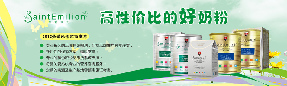 圣愛米倫精心挑選全球優(yōu)質奶源及供應商資源,針對中國寶寶體質,專為中國寶寶用心配方,目前推出有機奶源嬰幼兒配方羊奶粉,100%進口奶源嬰幼兒配方牛奶粉兩大系列。陜西圣愛米倫乳品營銷有限公司面向全國空白市場區(qū)域誠招圣愛米倫經銷商,招商政策如下。