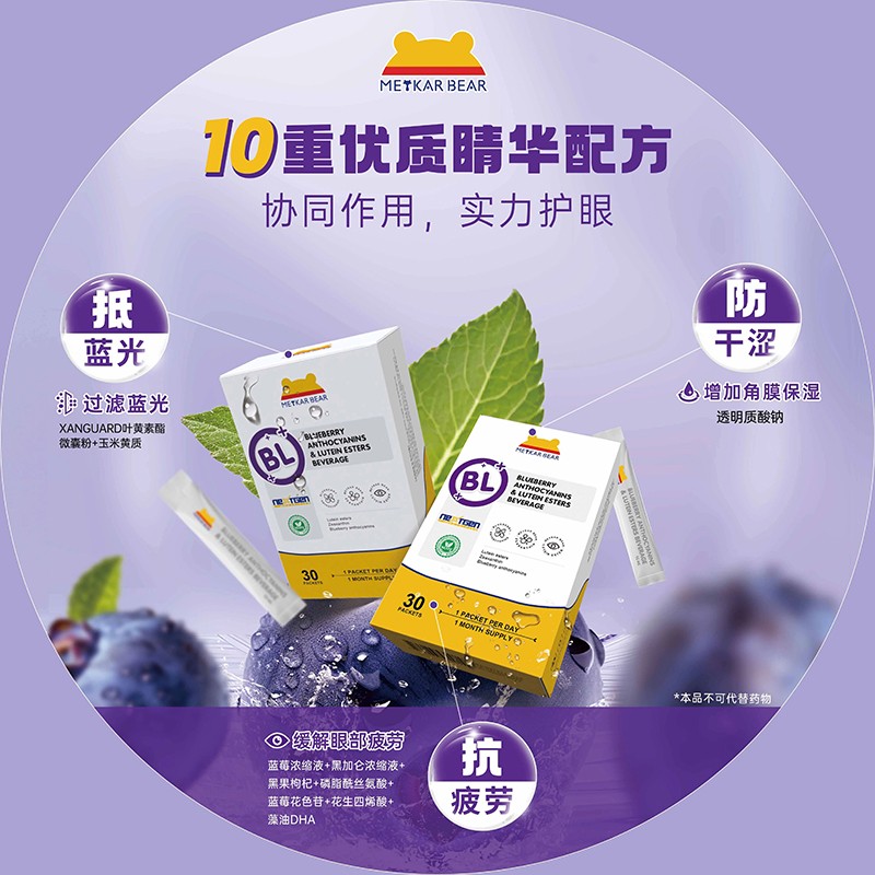 此次參展,瑞普斯攜旗下MEYKARBEAR美卡熊品牌新品——藍(lán)莓花色苷葉黃素酯飲品重磅亮相。這款采用條帶飲劑型設(shè)計(jì)的護(hù)眼佳品,巧妙融合了藍(lán)莓與葉黃素酯的自然精華,特含專利成分XanGuard葉黃素酯微囊粉100mg,采用專利微囊包裹技術(shù),確保營(yíng)養(yǎng)成分穩(wěn)定,更易被吸收,補(bǔ)充眼睛所需,讓眼部健康更有保障。