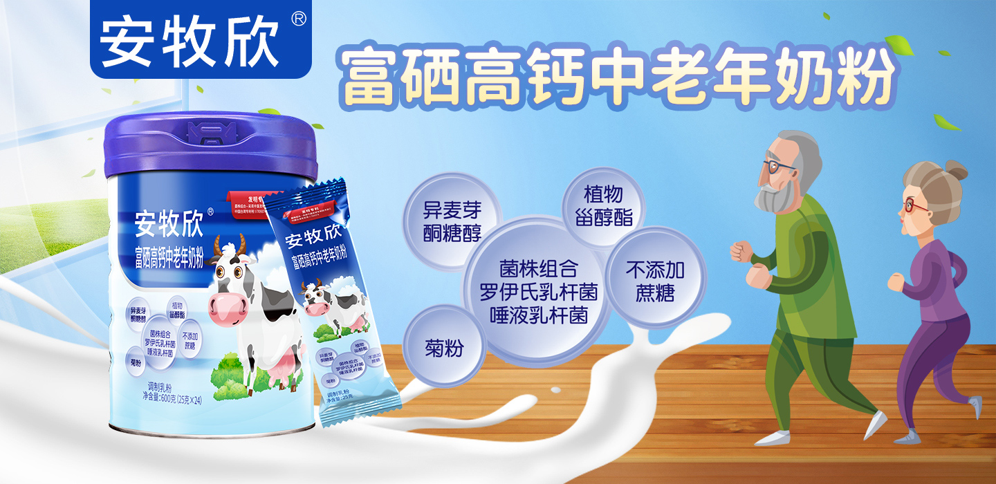 安牧欣富硒高鈣中老年奶粉,根據(jù)中老年人群體質(zhì)特點和健康需求精心研發(fā)配方,以生牛乳、脫脂乳粉、脫鹽乳清粉、麥芽糊精、菊粉、異麥芽酮糖醇、植物甾醇酯等為主要原料,添加專利技術(shù)菌株組合,多重營養(yǎng),科學(xué)配比,不添加蔗糖,健康美味無負擔(dān)!