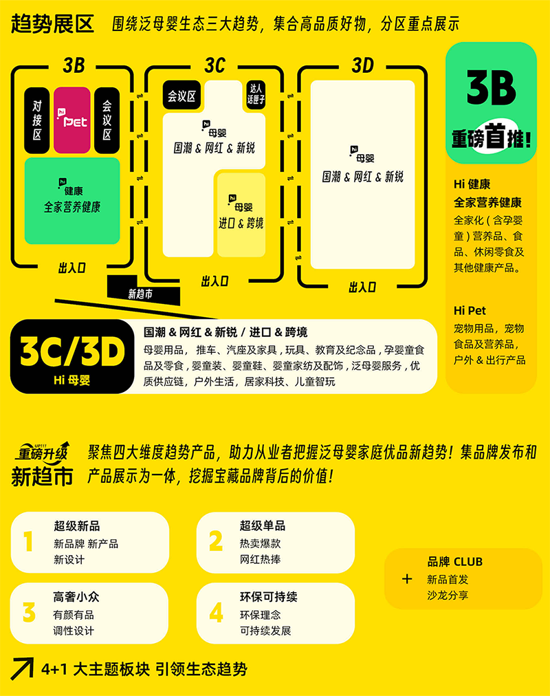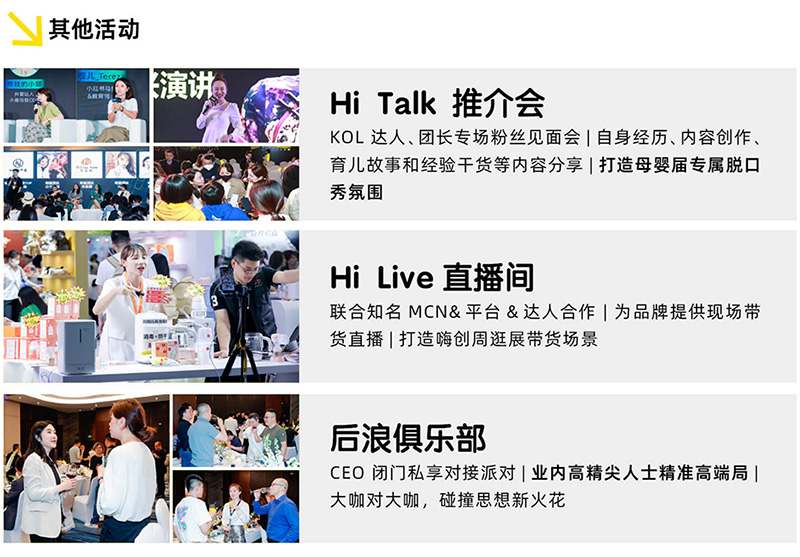 嗨創(chuàng)展圍繞泛母嬰生態(tài)三大趨勢——Hi母嬰、Hi健康、Hi Pet,分區(qū)重點展示,打造泛母嬰高品質(zhì)好物集合區(qū)。展區(qū)將匯聚1,000+*符合Z世代消費需求的趨勢品牌,海內(nèi)外的海量尖貨爆品新貨競相綻放;精準(zhǔn)對接20,000+*新渠道、大買家。(*表2024預(yù)計)